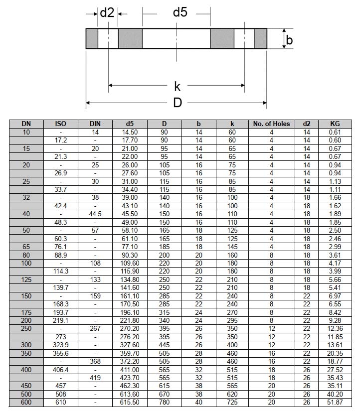 Thông số kỹ thuật tiêu chuẩn mặt bích DIN PN10: