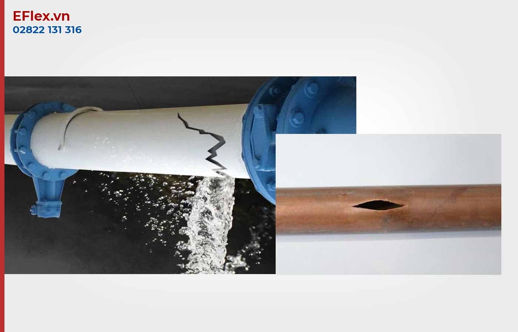 - Sự giãn nở sẽ gây vỡ đường ống: Sự giãn nở của đường ống bị ngăn cản đạt tới một độ nhất định sẽ dẫn tới vỡ ống, rò rỉ ống.