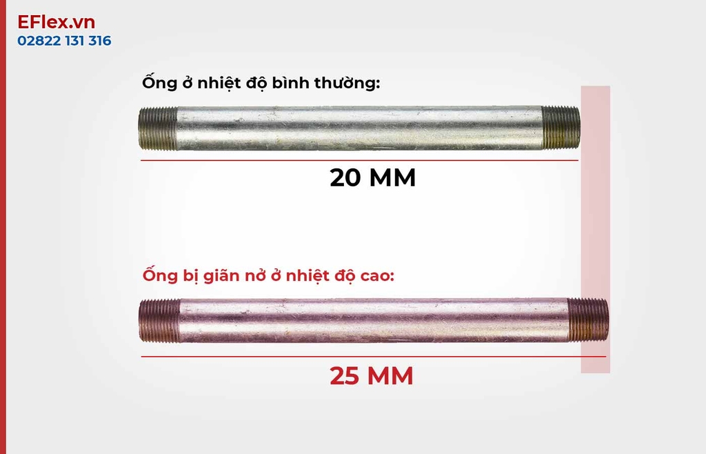 Ống giãn nở nhiệt giúp triệt tiêu không chỉ sự giãn ra do tăng nhiệt mà còn triệu tiêu sự co lại do giảm nhiệt.